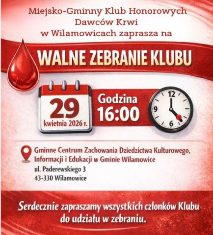 ZWYCZAJNEGO WALNEGO ZEBRANIA CZŁONKÓW STOWARZYSZENIA „MIEJSKO-GMINNY KLUB HONOROWYCH DAWCÓW KRWI W WILAMOWICACH”